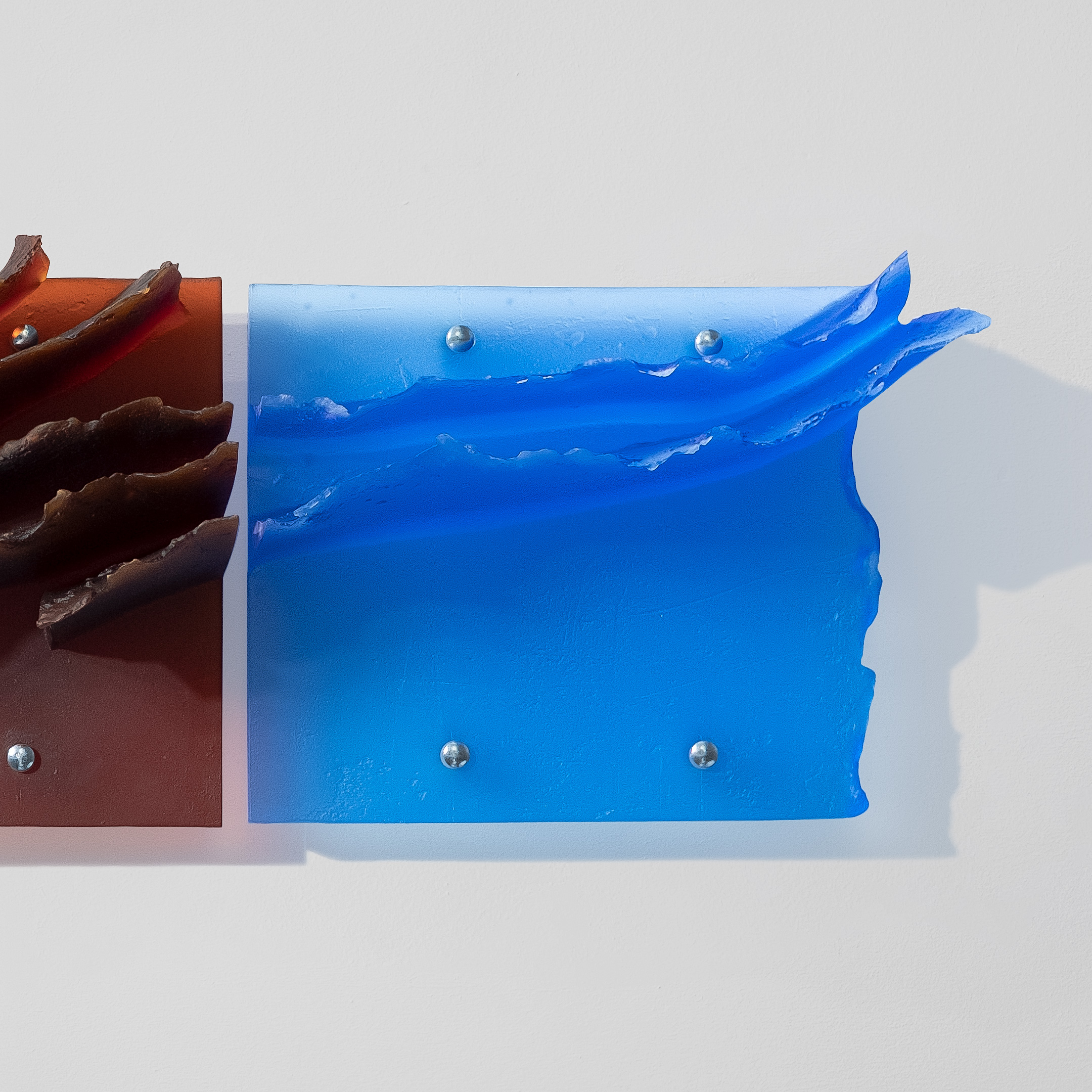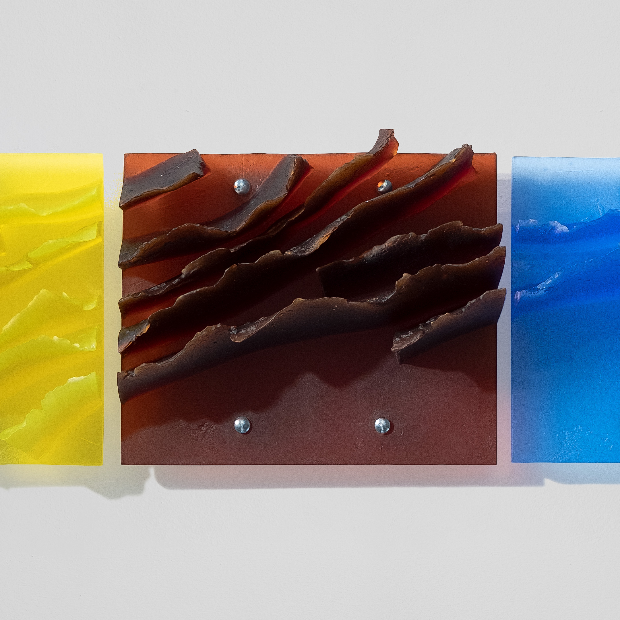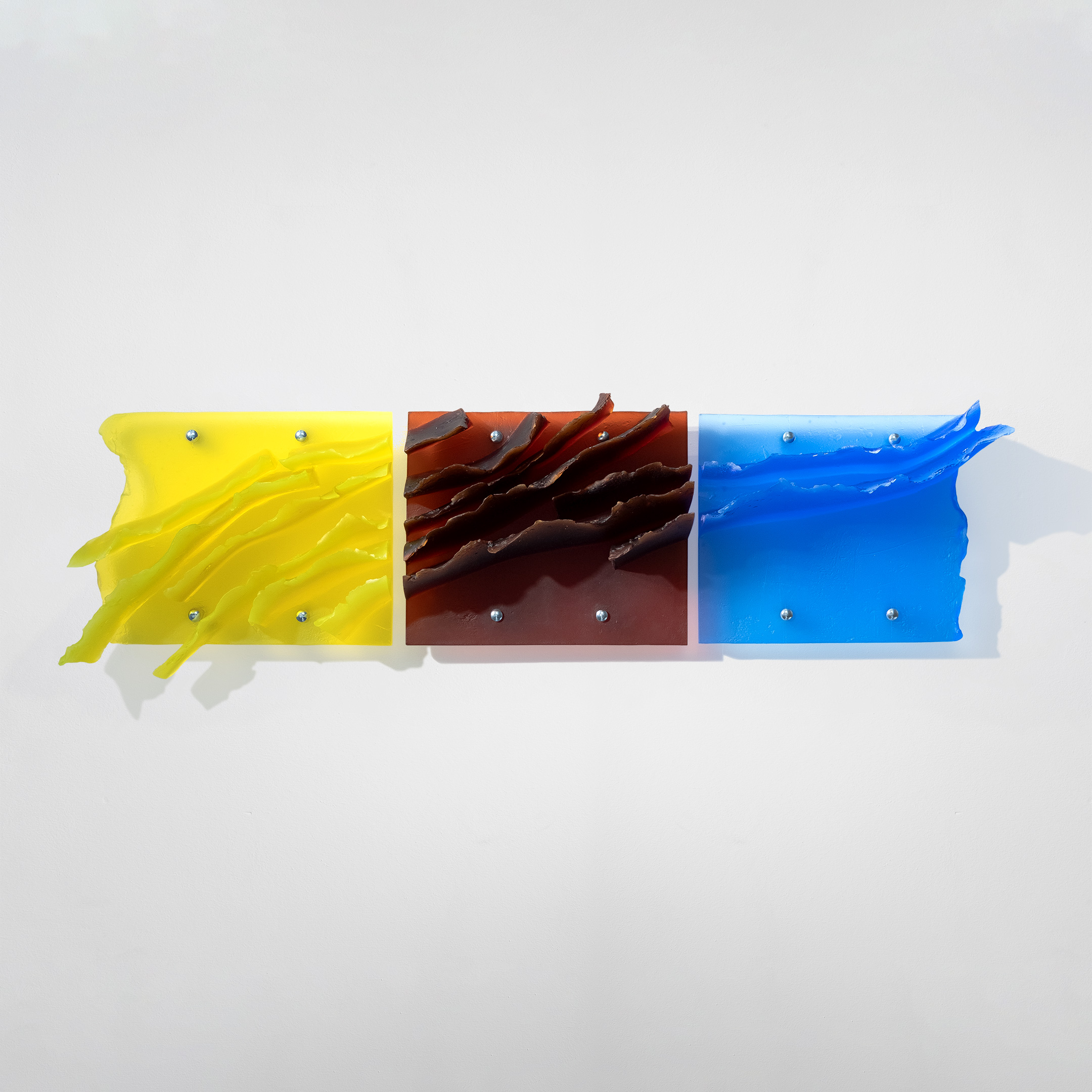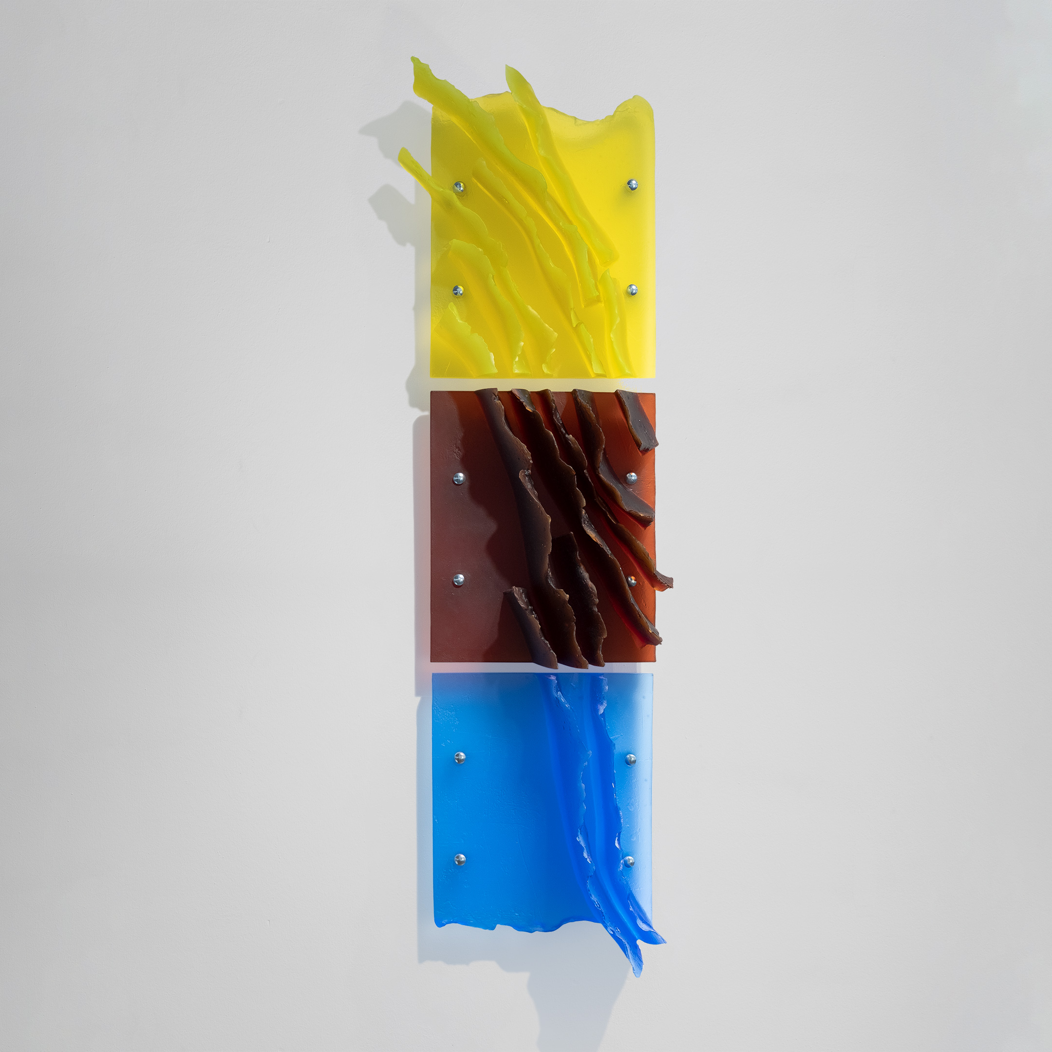 Klin casted, cut ‚yellow, topaz, blue glass‚ triptych Note: This work is available on commision only, custom made sizes and colors possible.