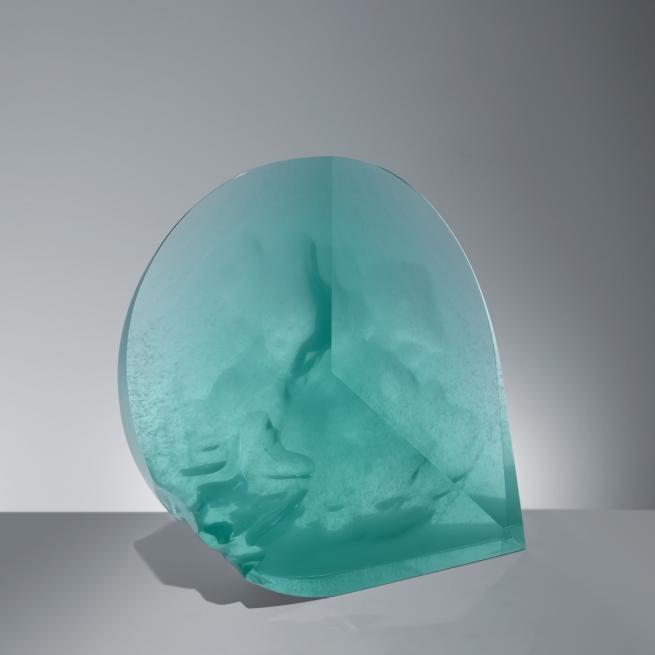 Born 1952 in the Czech RepublicThe work of Jiří Karel focuses on the use of floated optical glass slabs hot-welded in compact blocks that he sculpts and tirelessly polishes until the end composition. Often he uses also firing materials, such as pigments, and metal oxides on the glass plates for painting graphic patterns inside and outside of his sculptures. Then his colorations are first heated and then fused in a compact block. In his sculptures, the artist plays subtly with lighting and reflection and the transparent thickness of the material.