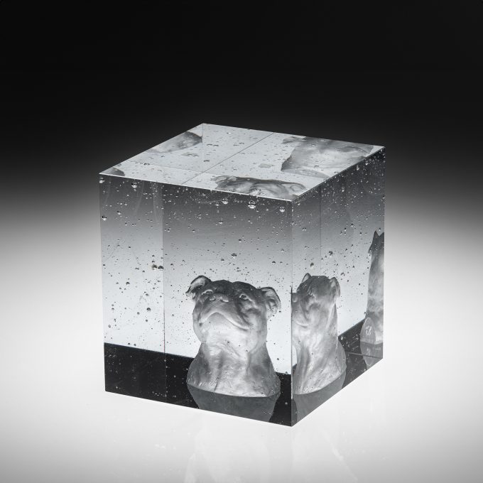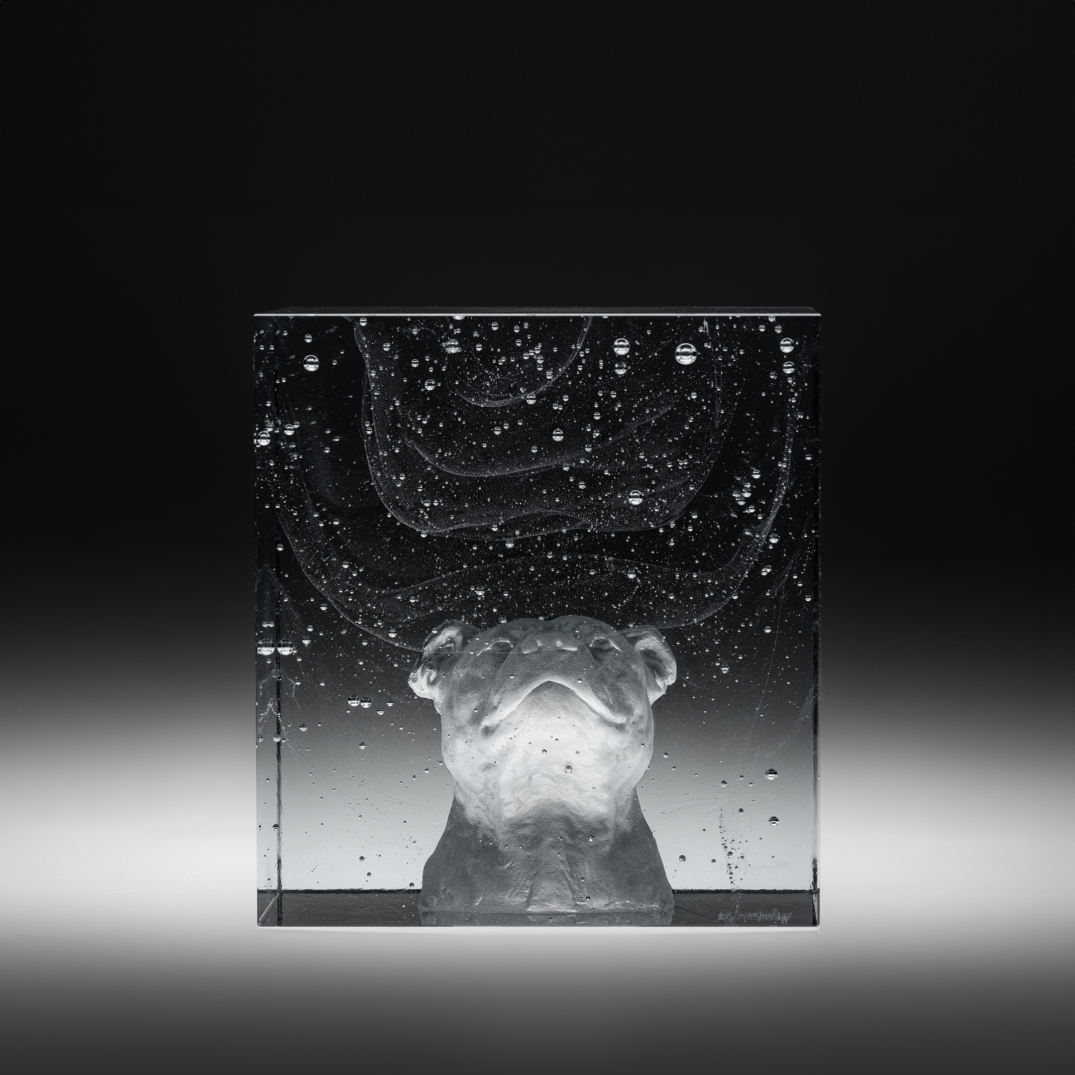 The Fine Art Glass Sculpture »Dog Cube« was created by glass artist Andrej Jančovič from Slovak Republic. The sculpture was created in 2017.