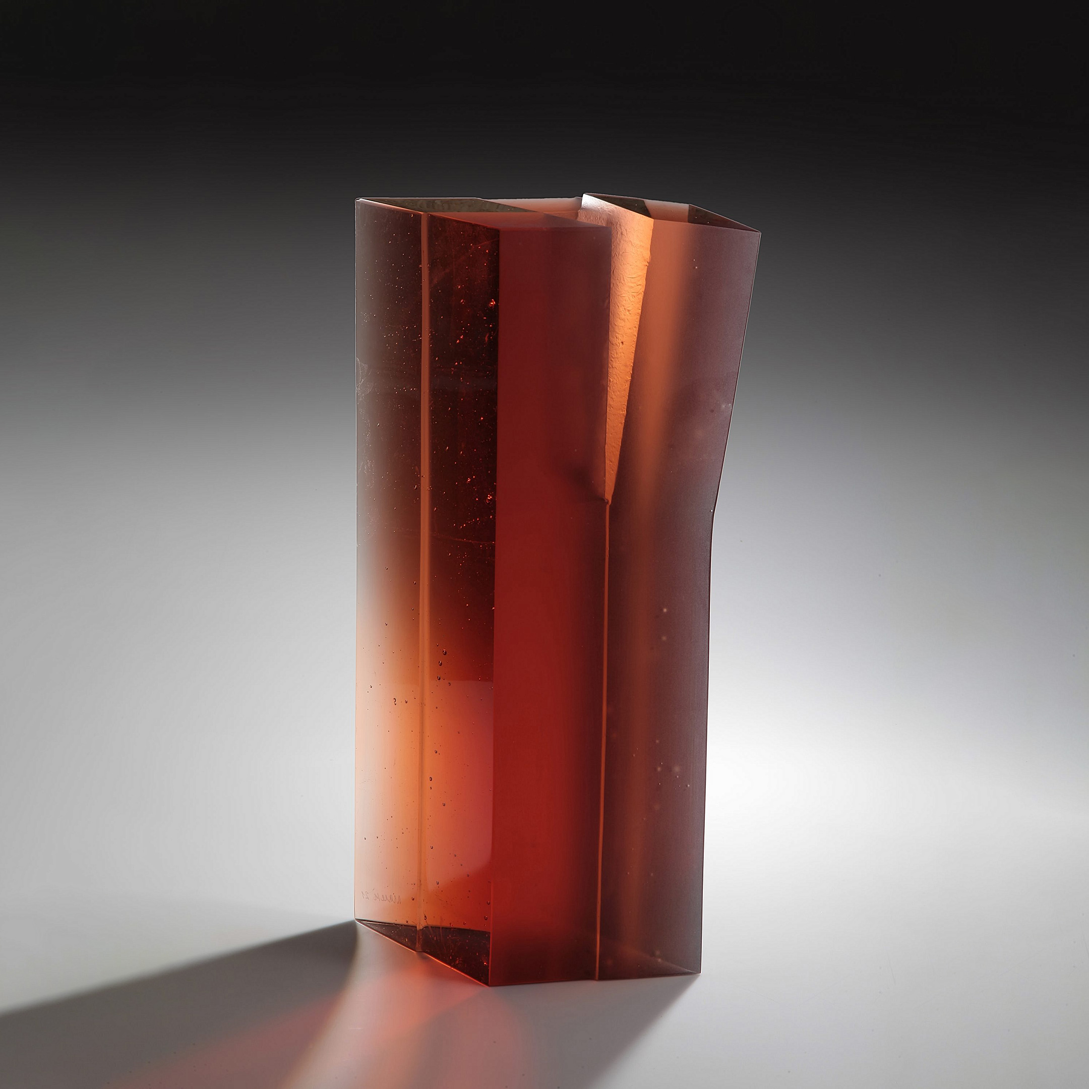 Remelted glass in mould, cut, polished, sand blasted