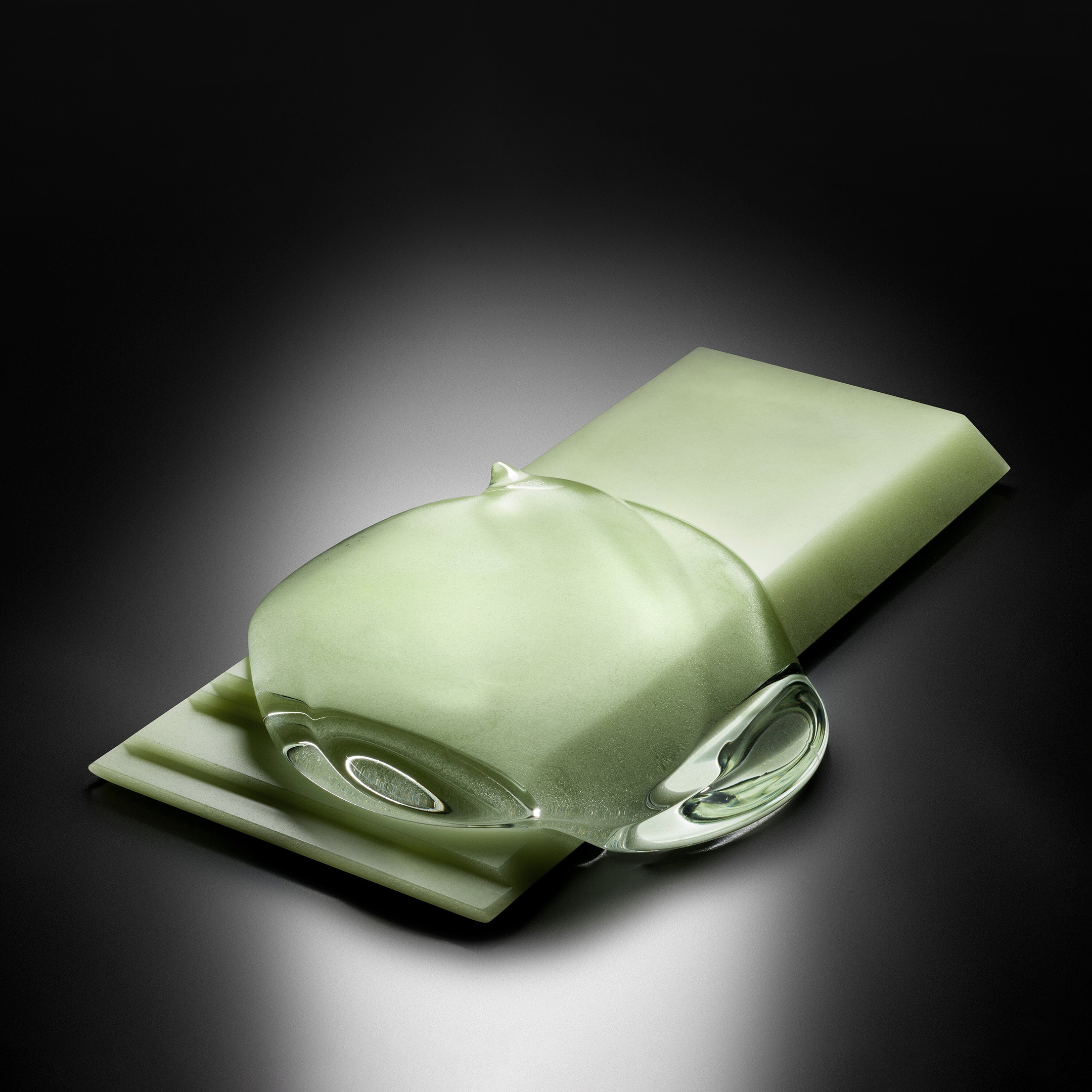 The Fine Art Glass Sculpture »Green Calm« was created by glass artist Václav Řezáč from Czech Republic. The sculpture was created in 2021.
