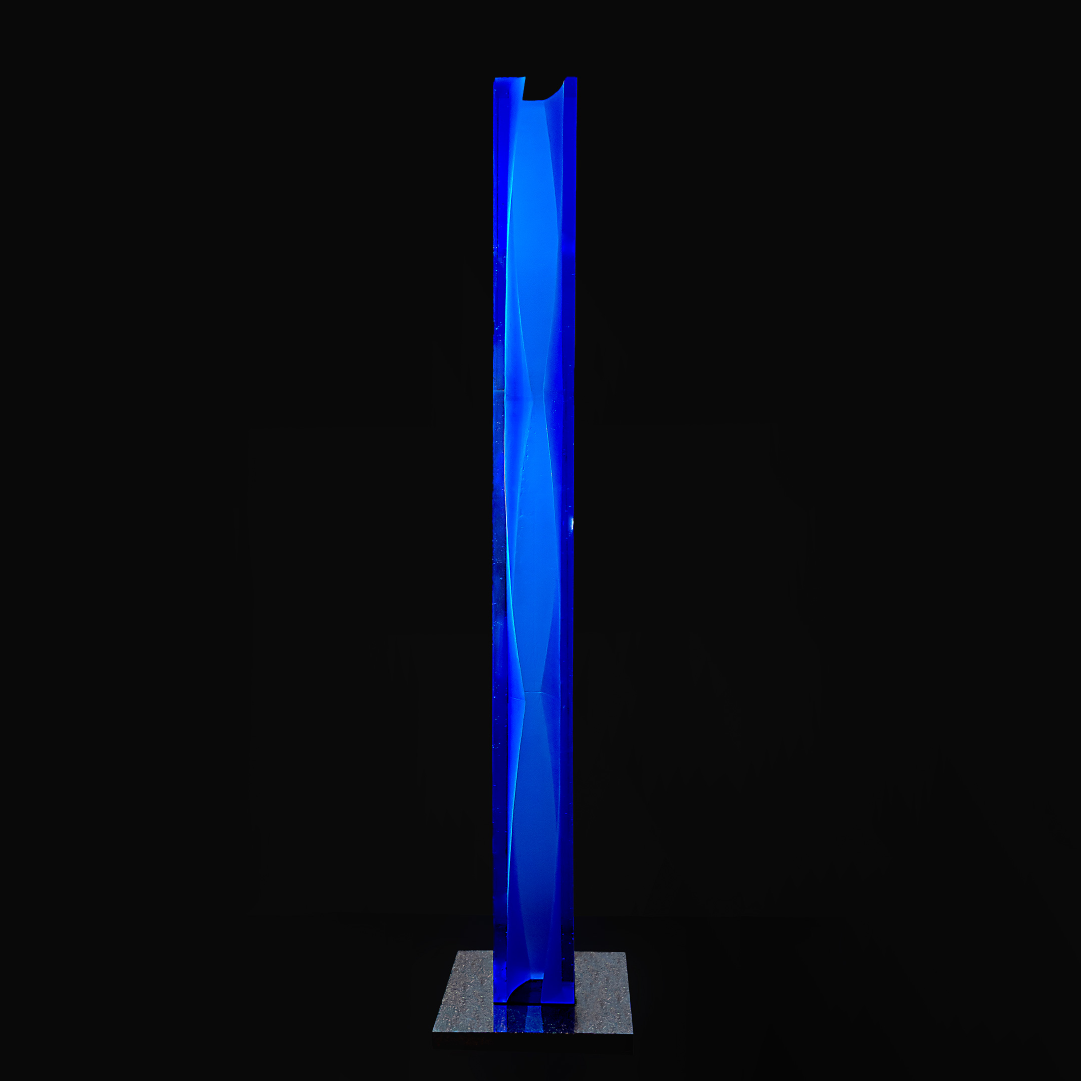 Kiln casted glass, cut and polished, granite base