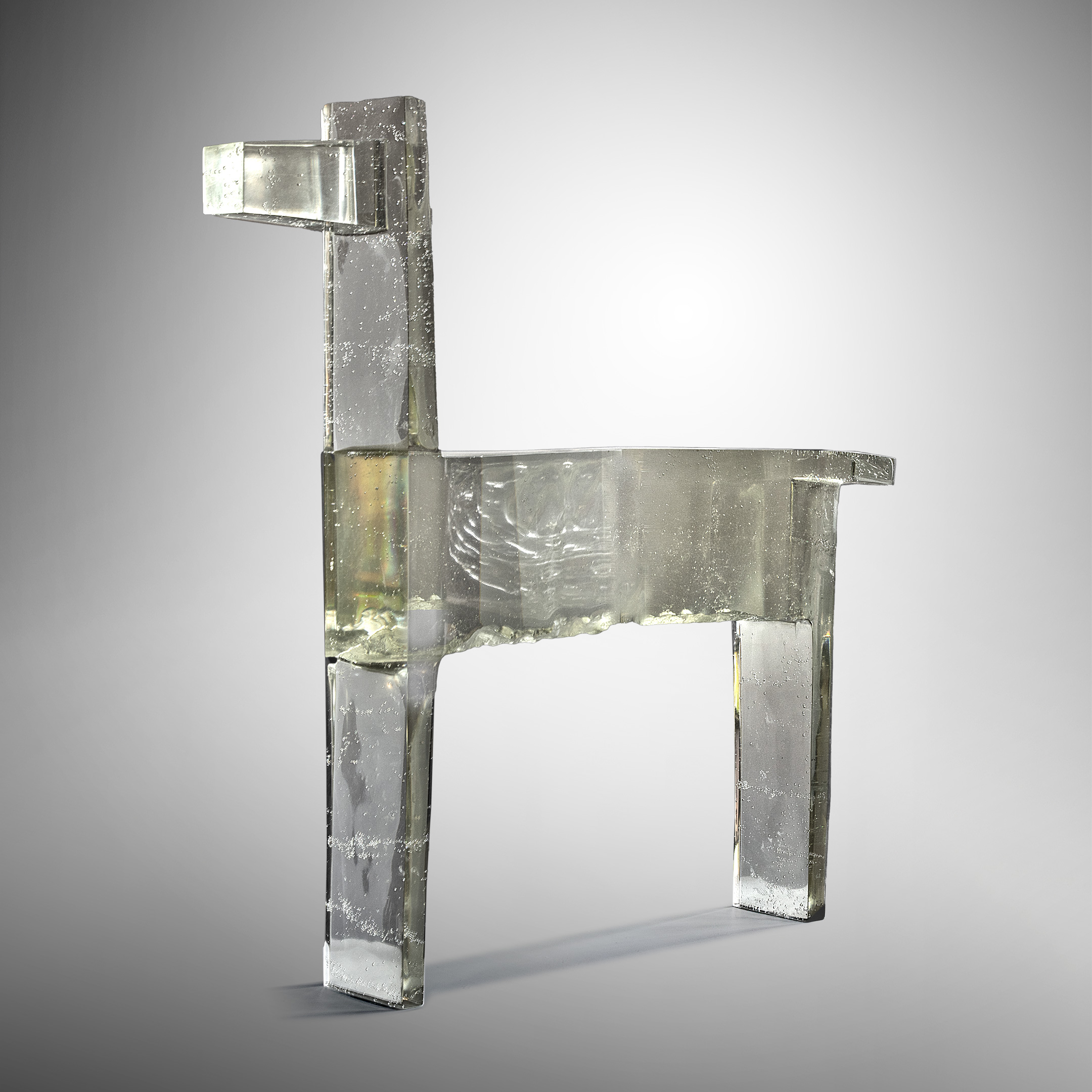 Born 1960 in the Czech RepublicIvana Šrámková seeks her inspiration from indigene people or from the antiquity. For her monumental sculptures the artist partially renounces the strong characteristics of the material glass and takes instead advantage of its colourfulness, whereby the translucency of the glass is limited, due to her manner of modelling the object’s surface. She expresses her own philosophy in her sculptures of human beings and animals.