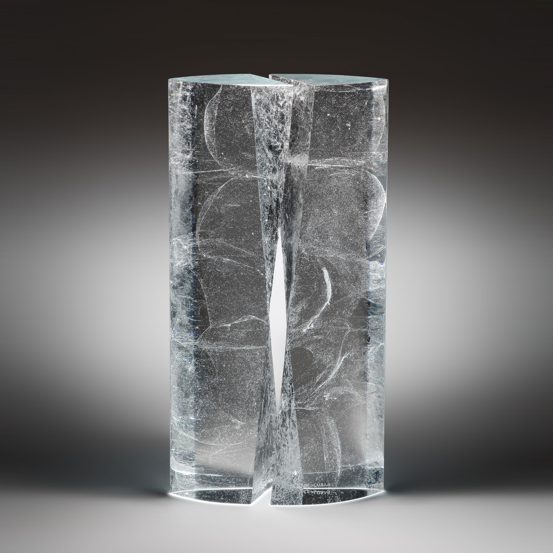 Born 1963 in the Czech RepublicJosef Marek uses natural qualities of glass mass and its ability to create the feeling of depth in a very short space. His practical sculptural training, exceptional talent and strong imagination gives him the advantage to approach glass from many different directions. Josef, in his simple, nearly minimalistic forms – influenced by his long stay in Japan as a professor at Toyama Institute of Glass Art – creates unreal spaces with mysterious feeling or creating objects out of glass in impossible positions denying gravity.