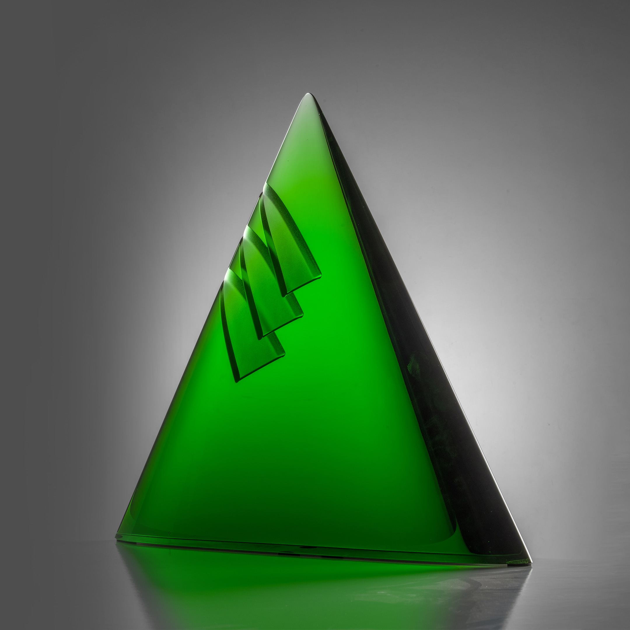 Born 1949 in the Czech RepublicPetr Hora began his studies in 1965 at the Applied College of Glass-making in Železný Brod, where Libenský acted as Director. Petr´s colored glass objects which are perfectly worked in a craftsman manner, are based on basic geometric shapes. The overall refined quality of his sculpture is often enhanced by the juxtaposition of matte and polished surfaces. But always present, is a subtle and mysterious light deep within these free-form monochromatic sculptures, and a design sensibility inspired by modern architecture.