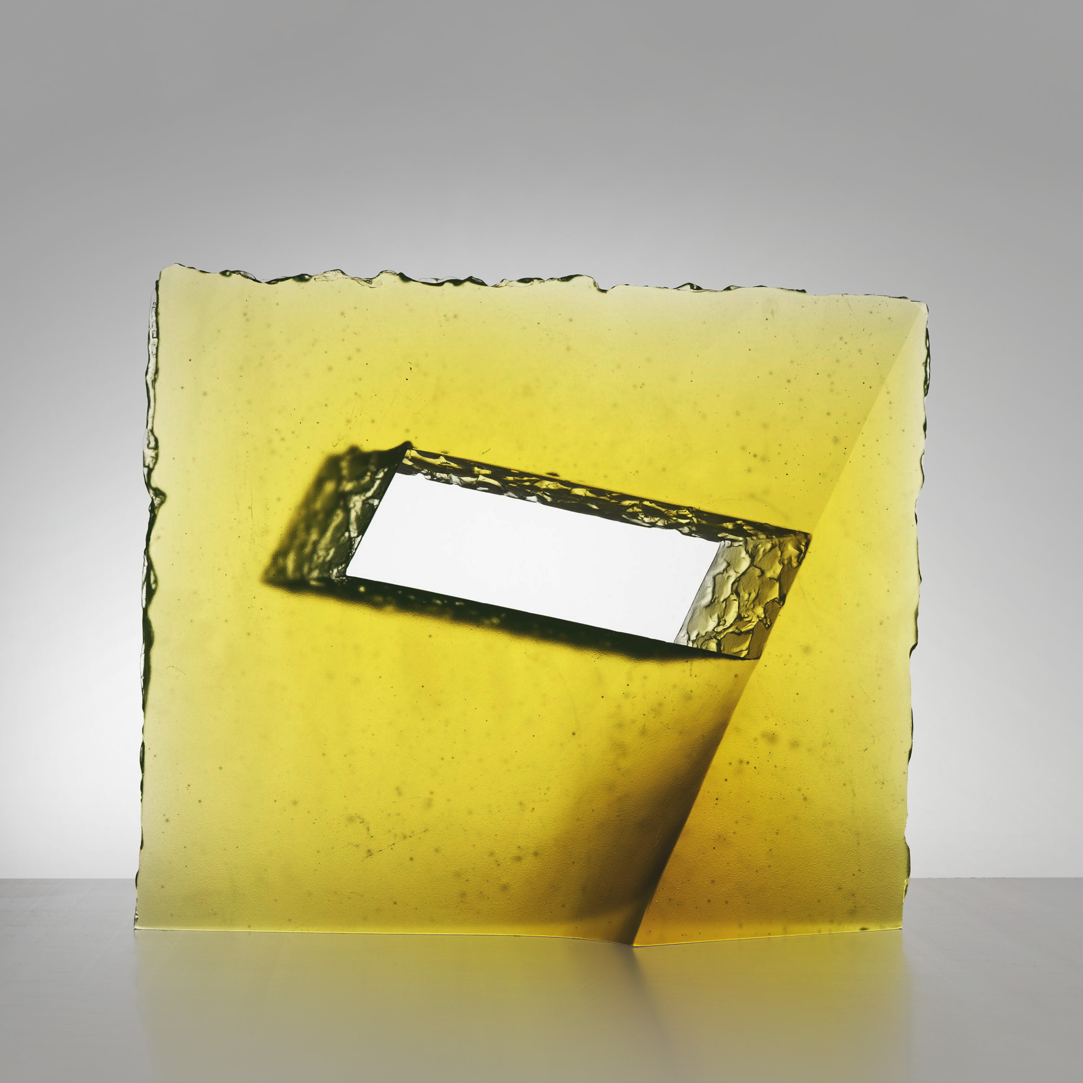 Born 1972 in the Czech RepublicJiří Suchý attended the glass school in Nový Bor and then went on to study at the Academy of Art, Architecture and Design in Prague. His glass objects, which are melted in moulds in the kiln, follow classical Czech glass sculpture in their design language. In his compositions he works with displacements of geometric objects, layering and blending them.