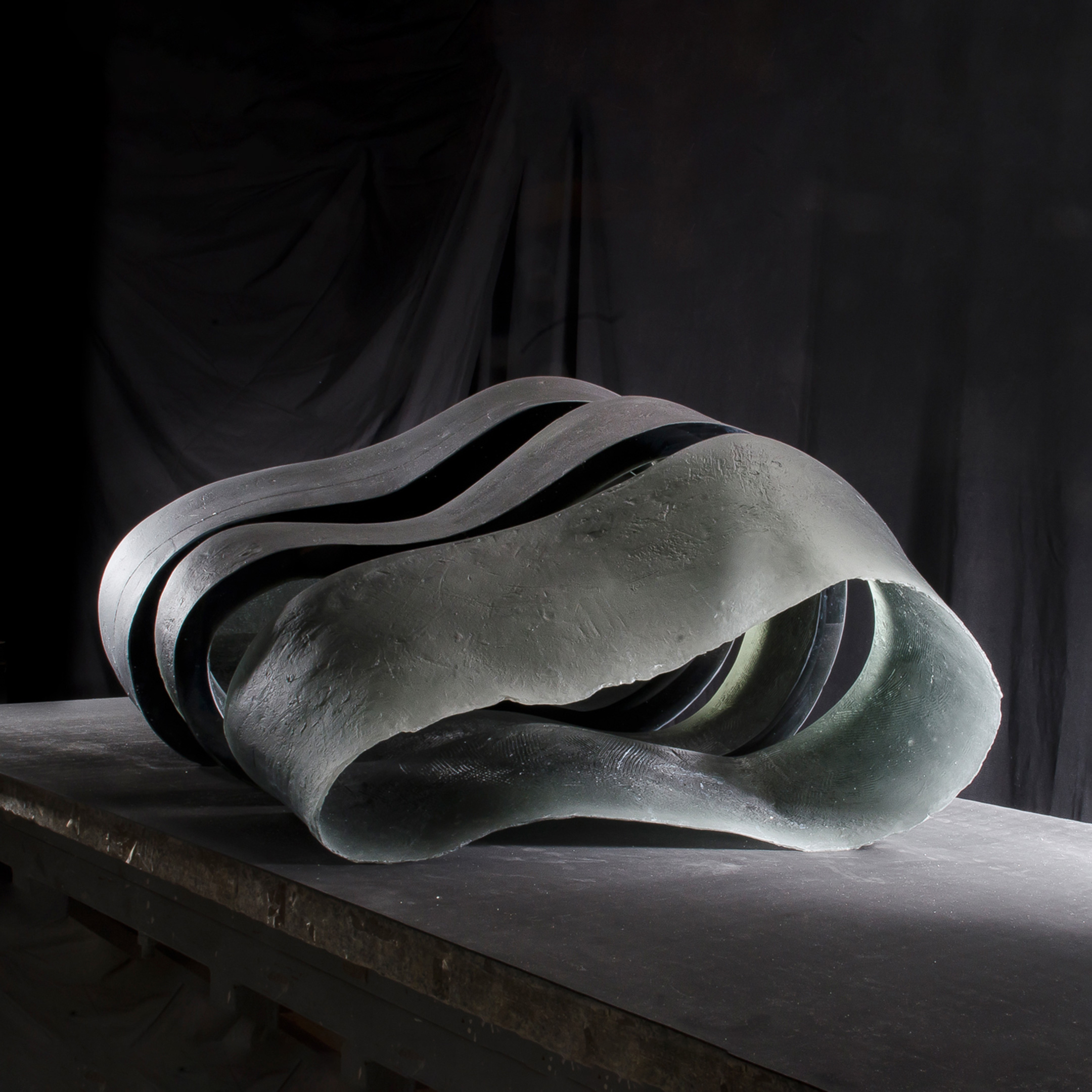 Born 1947, passed away 2025 in the Slovak RepublicZora Palová makes sculptures with fluid gestures that break or pierce a surface, like ripples on the sea, and irregularly rounded sculptures with large perforations that take away any sense of a solid, cold mass. She said in an interview “Glass is a very spiritual material, it can absorb or reflect light. It is translucent or transparent. You can use it for expressions that you could never achieve with bronze or wood.