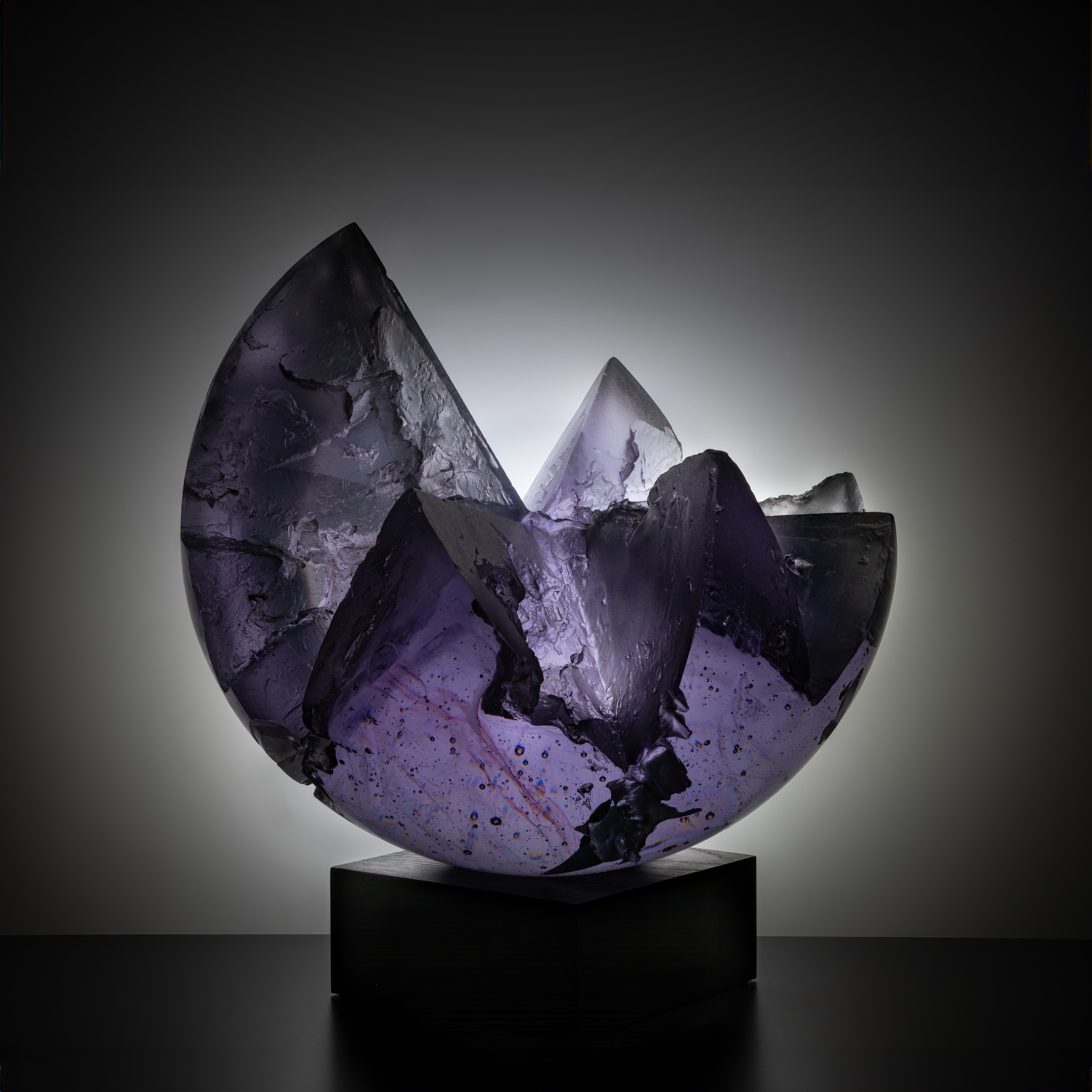 Born 1951 in the Czech RepublicJan Exnar combines in his melted glass objects the sculptured form with a perfectly cut surface. To shape the forms he makes use of the transparency of the glass and its strong colors. The effects of the light on the cast and cut forms of Jan Exnar’s glass objects transform them into fascinating, permanently changing monumental sculptures.