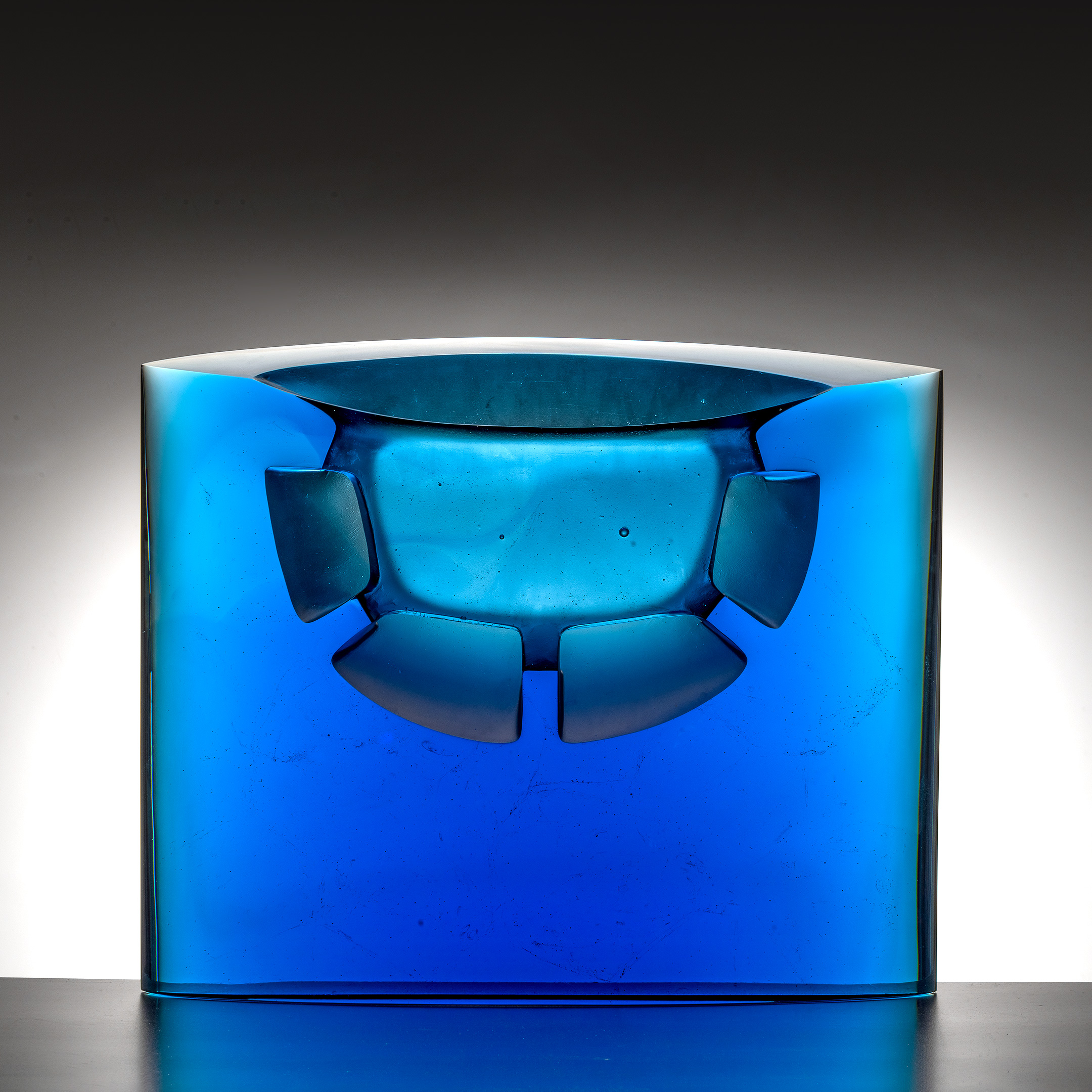 Born 1966 in the Czech RepublicIn her objects made from molten glass Eva Vlčková combines the austere architectural form with smooth, round shapes, and thereby achieves a special tension. The translucent reflections that softly shine through the surface additionally shape the inside of the objects. By this the artist succeeds to soften the severe architecture and to give her objects soft, feminine contours.