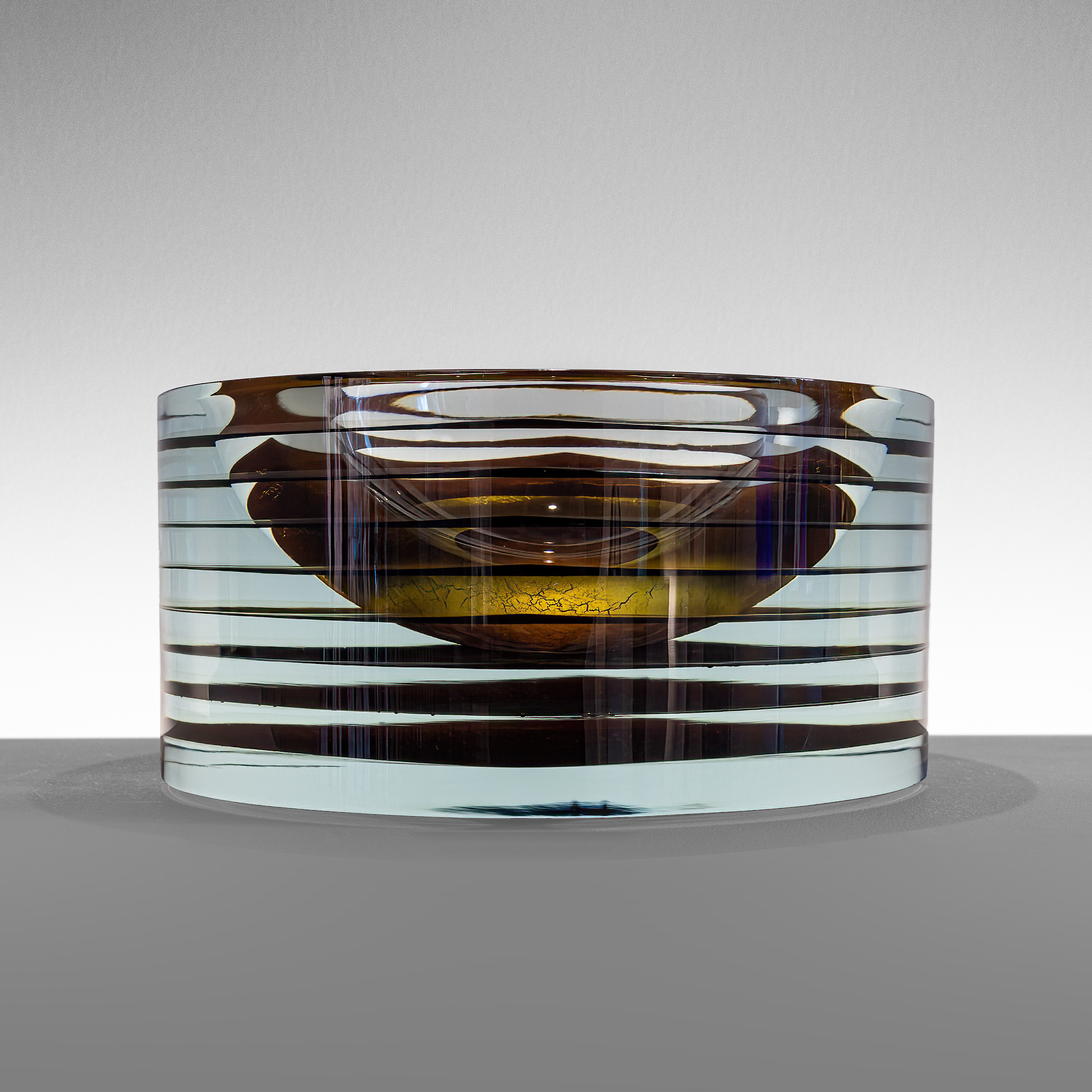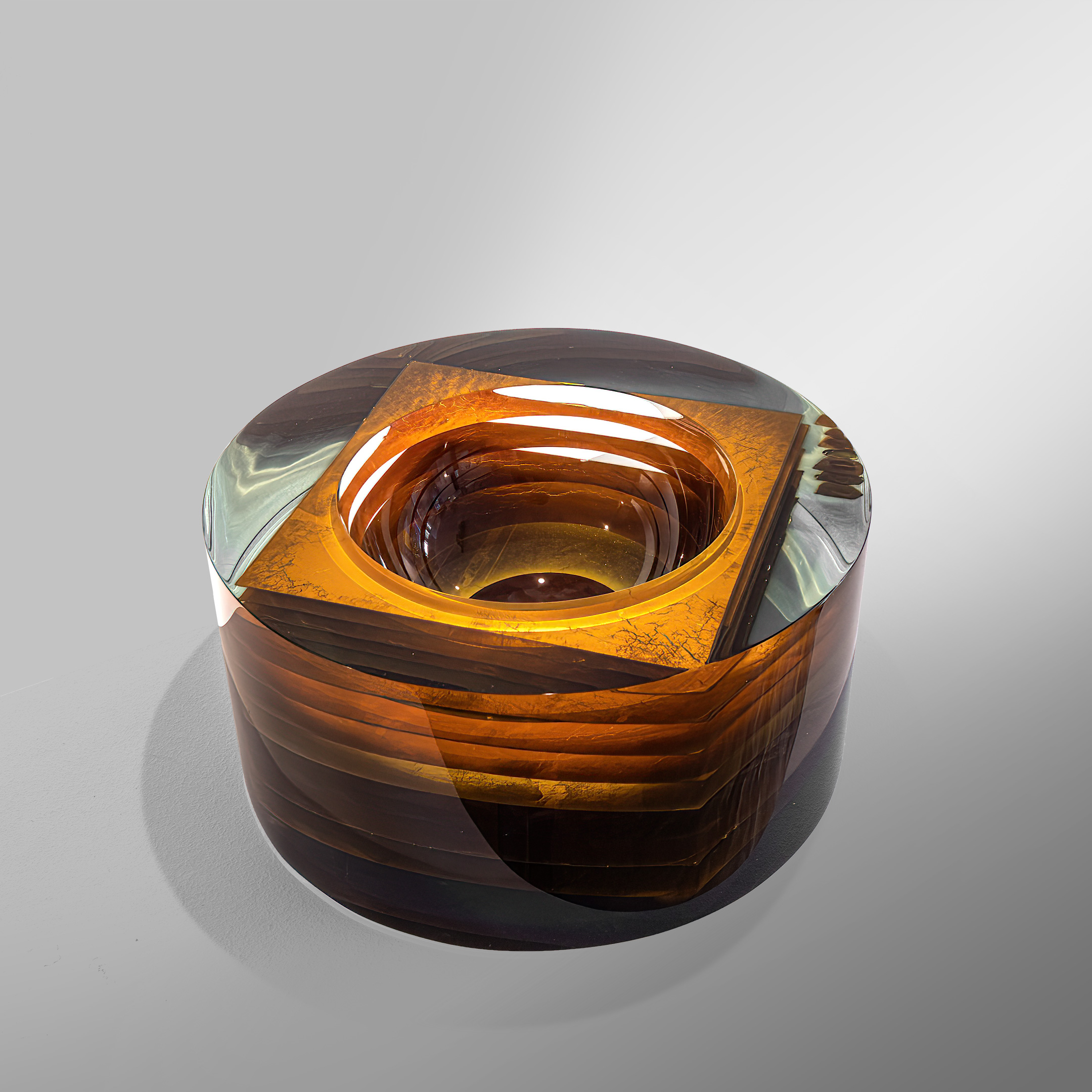Fused float glass with gold, cut and polished