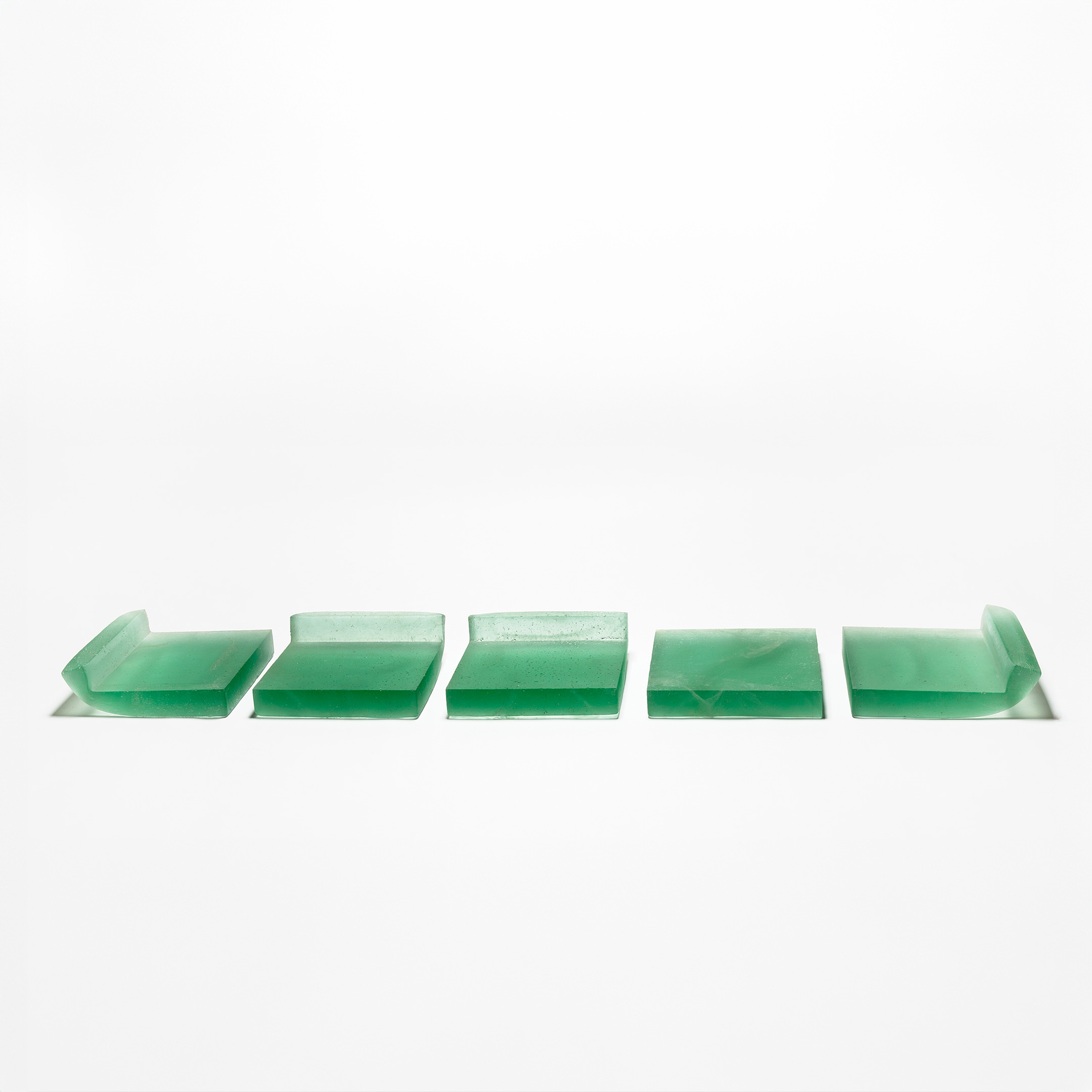The Fine Art Glass Sculpture »Blocks – 5 Green Angles« was created by glass artist Stig Persson from Denmark. The sculpture was created in 2007.