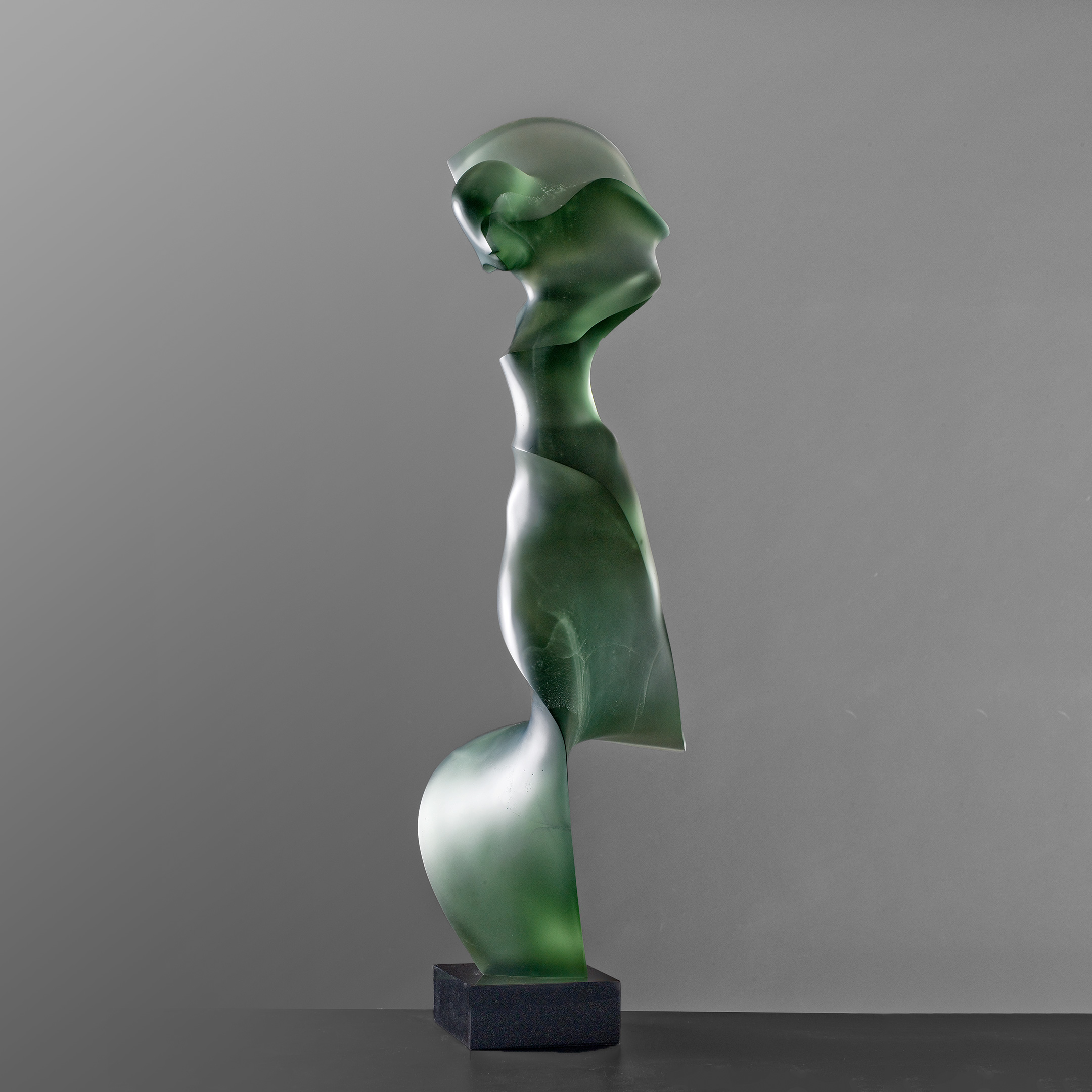 Mold melted glass, cut and polished, marble base. Note: This sculpture is available in custom colors on commission only.
