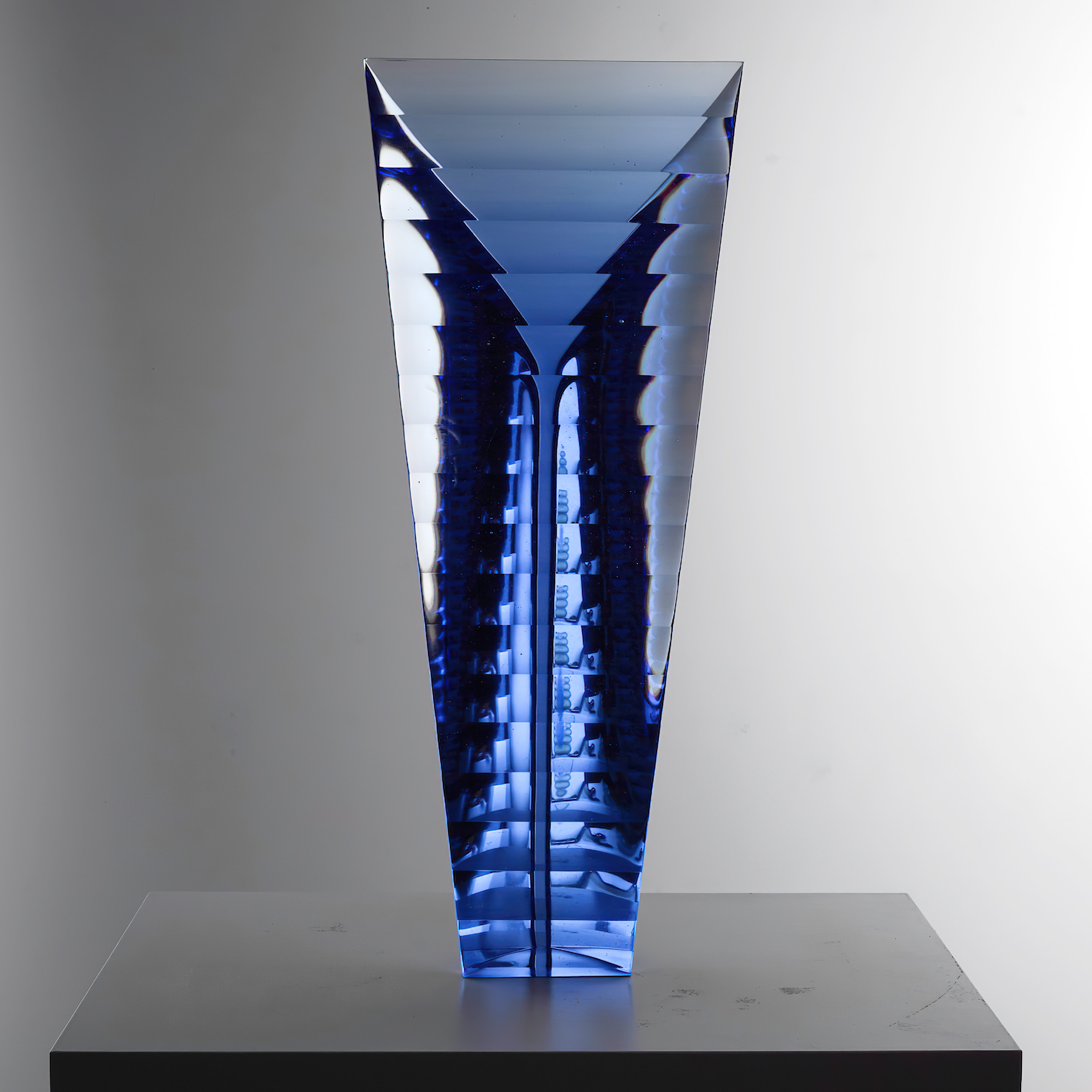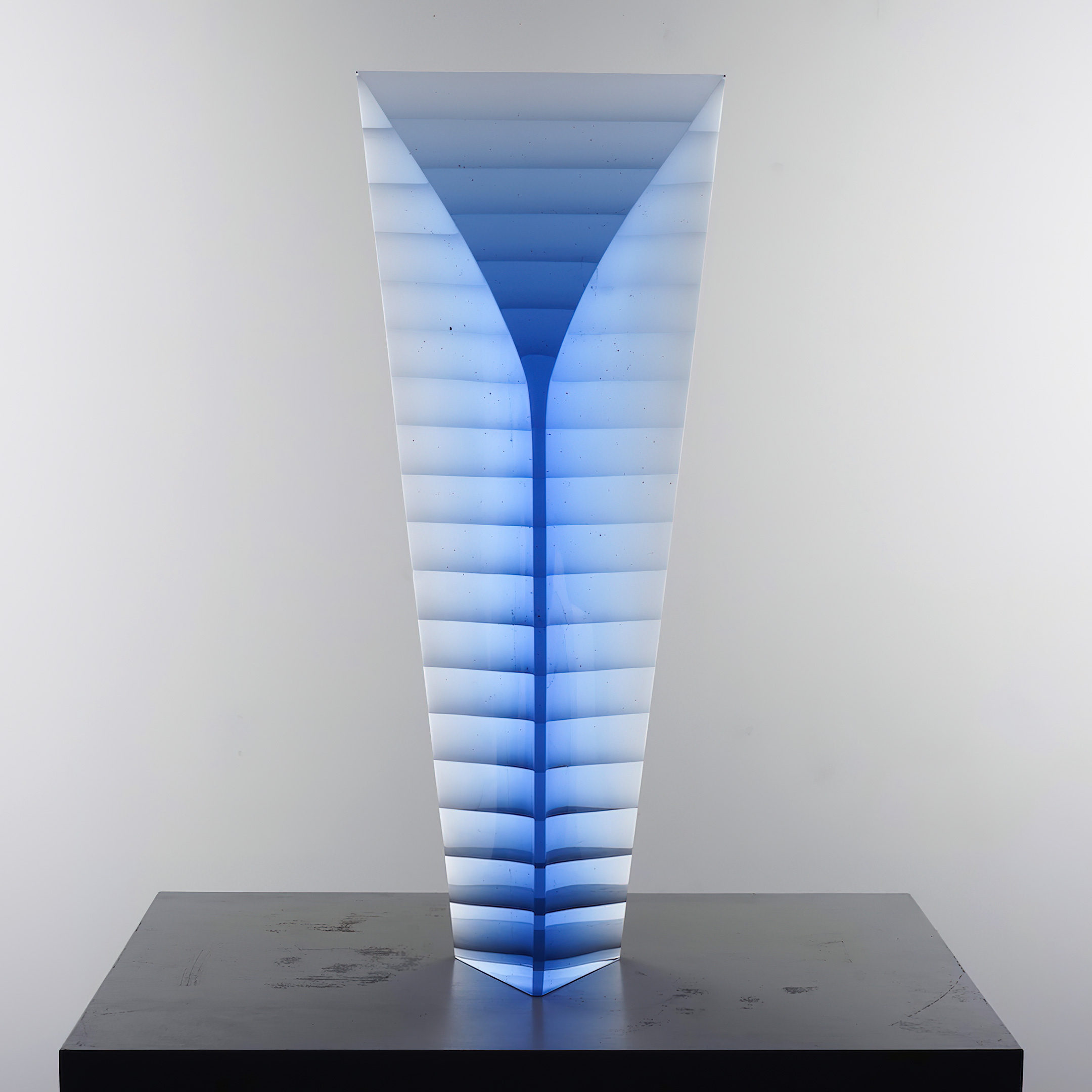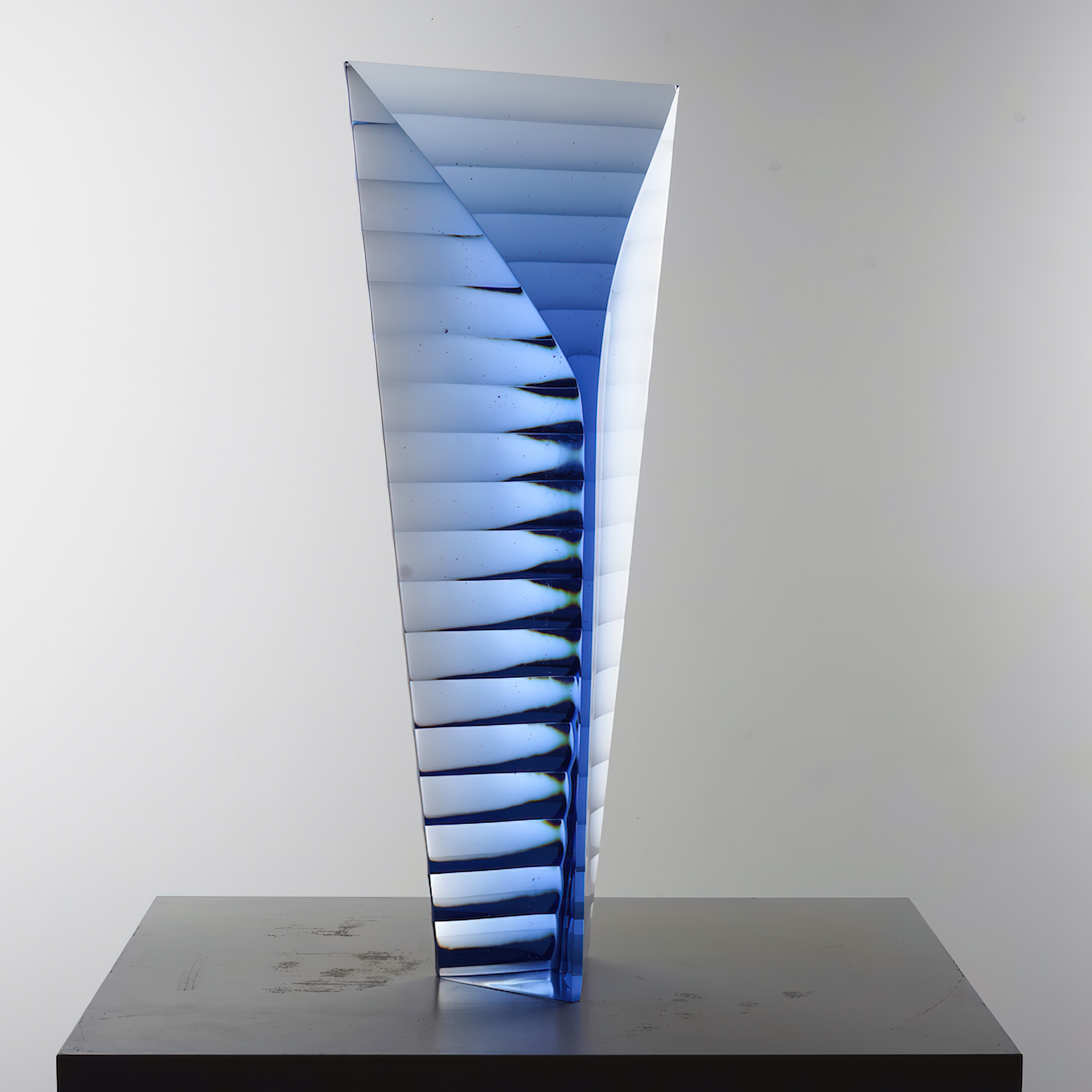 The Fine Art Glass Sculpture »Voltaic – Blue – Small« was created by glass artist Matyas Pavlik from Czech Republic. The sculpture was created in 2021.