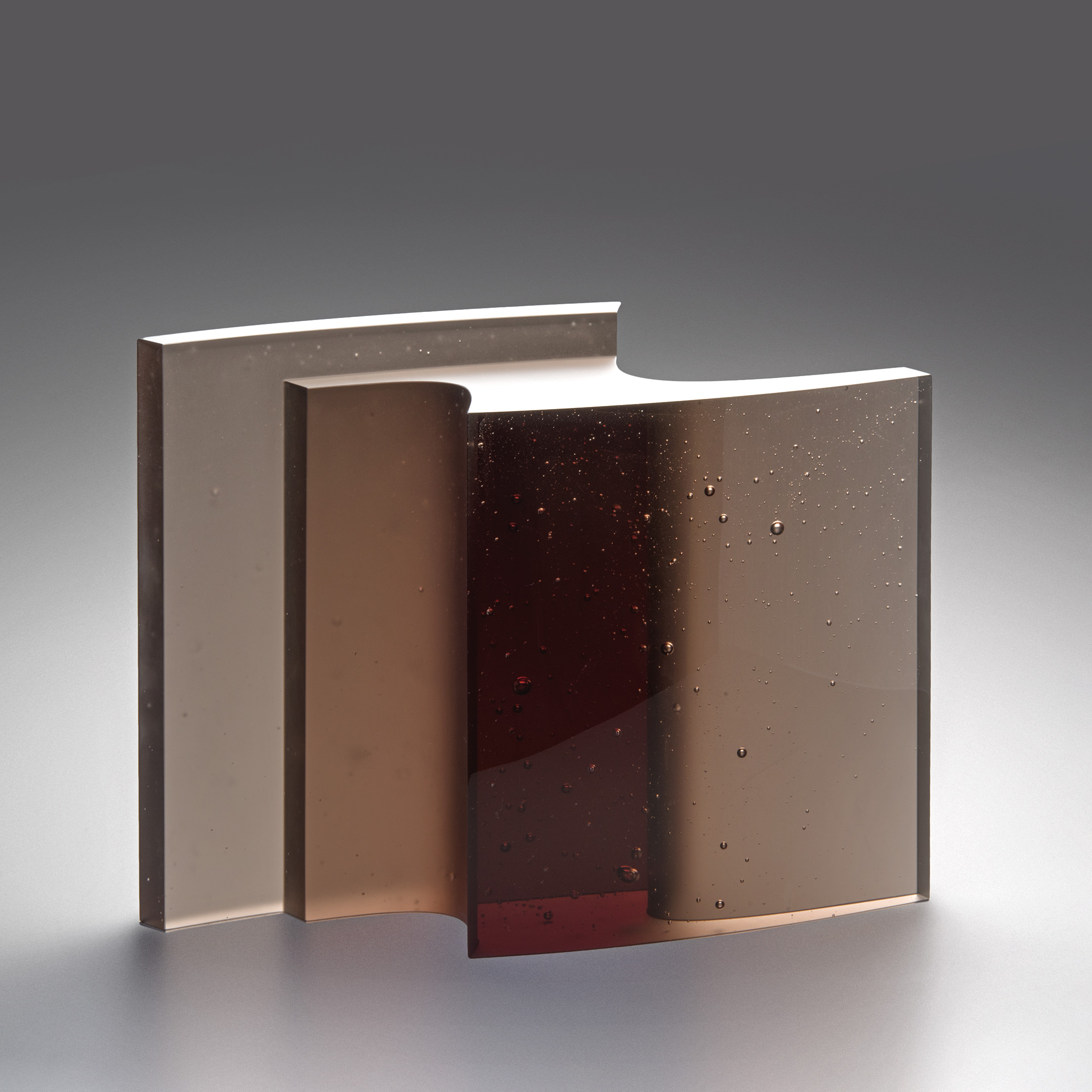 Born 1966 in the Czech RepublicIn her objects made from molten glass Eva Vlčková combines the austere architectural form with smooth, round shapes, and thereby achieves a special tension. The translucent reflections that softly shine through the surface additionally shape the inside of the objects. By this the artist succeeds to soften the severe architecture and to give her objects soft, feminine contours.
