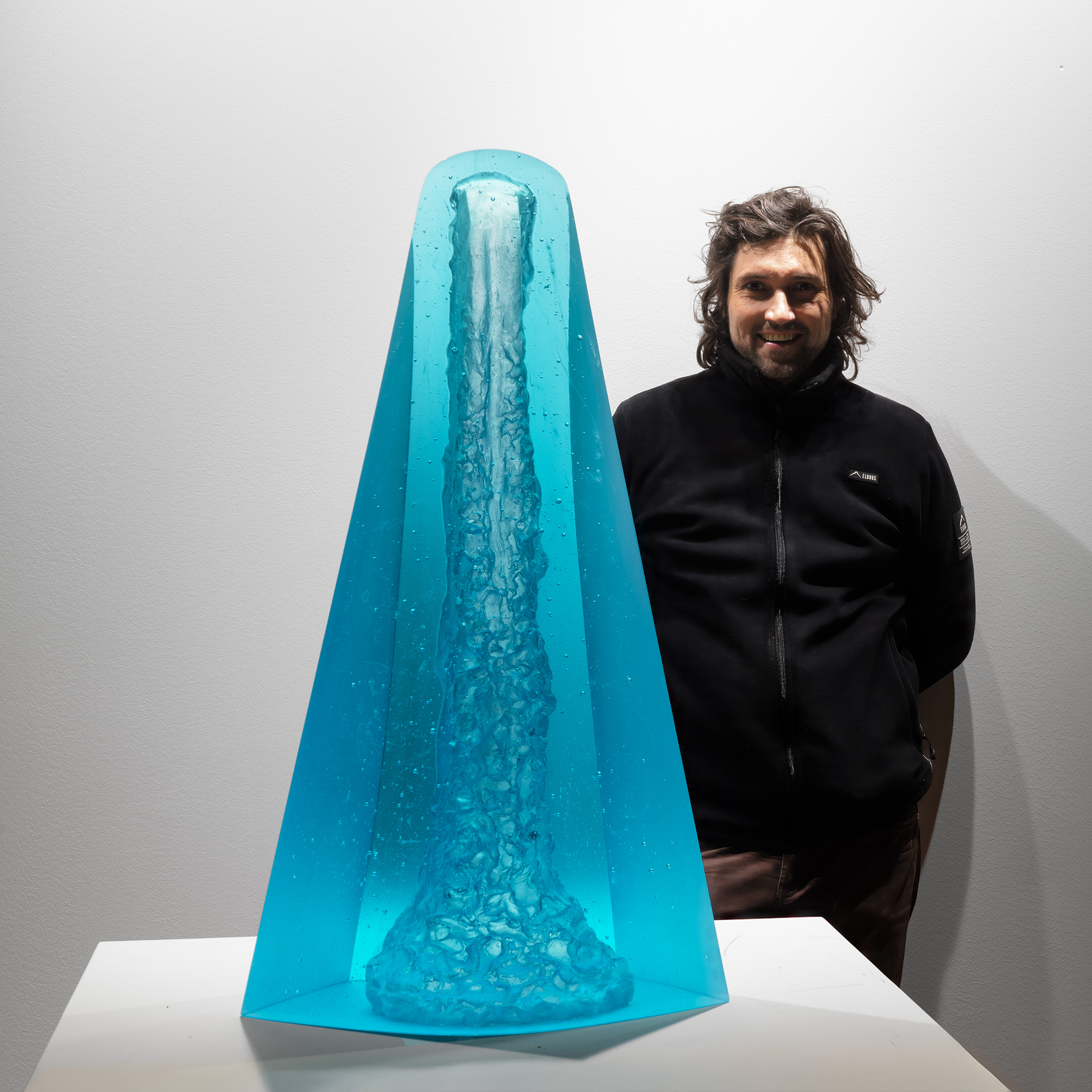The sculpture “Arctic Waterfall” by renowned glass artist Matyas Pavlik was created in 2025. This artwork measures 82 × 54 × 30 cm.